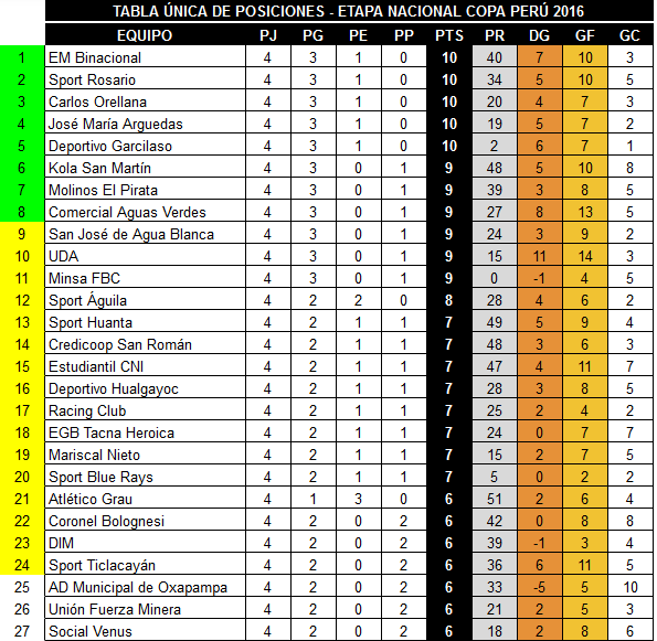 Si hoy terminaría la primera parte de la etapa Nacional de la Copa Perú, Kola San Martín estaría clasificando a los octavos de final, y Estudiantil CNI jugaría un repechaje en partidos de ida y vuelta con EGB Tacna Heroica para acceder a octavos de final.
