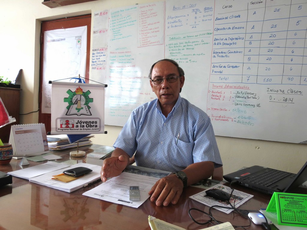 El licenciado Ronald Jhon Ampuero Cervantes, director del Instituto Superior Tecnológico Pedro A. Del Águila Hidalgo, con relación a los cursos que dictan a los jóvenes de bajos recursos económicos, mediante un convenio con el programa “Jóvenes a la Obra”, dijo, nosotros como instituto de nivel superior necesitamos insertar al mercado laboral a jóvenes capacitados normalmente para que ayuden al desarrollo de la región.