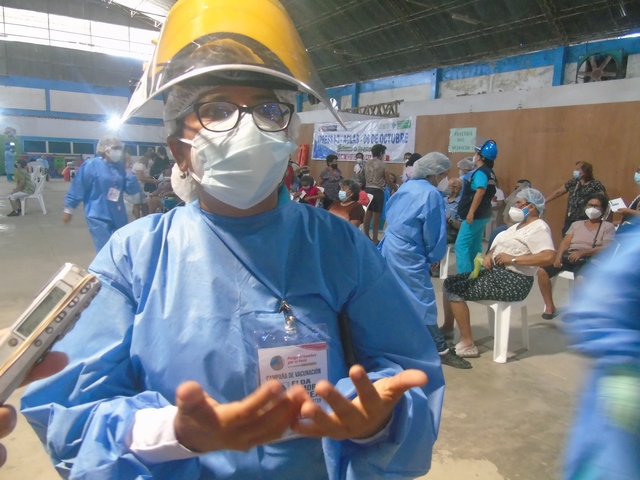 “Desde hace dos días nos hemos estado organizando, coordinando con la municipalidad de Belén que nos apoya en logística con sillas, mesas y así dar mayor comunidad a los adultos mayores. En cuanto al aporte del Minsa ponemos la brigada de vacunación, recursos humanos. Agradecemos que nos hayan permitido organizarnos mejor y dar tranquilidad a los adultos para que se vacunen mejor.