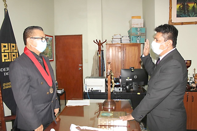 En ceremonia realizada el 29 de abril, el presidente de la Corte Superior de Justicia de Loreto, Carlos Alberto Del Piélago Cárdenas, tomó juramento al abogado. Asimismo, el acto protocolar contó con la presencia de los jueces superiores, Aristóteles Álvarez López, Roxana Chabela Carrión Ramírez, y Betty Magallanes Hernández.