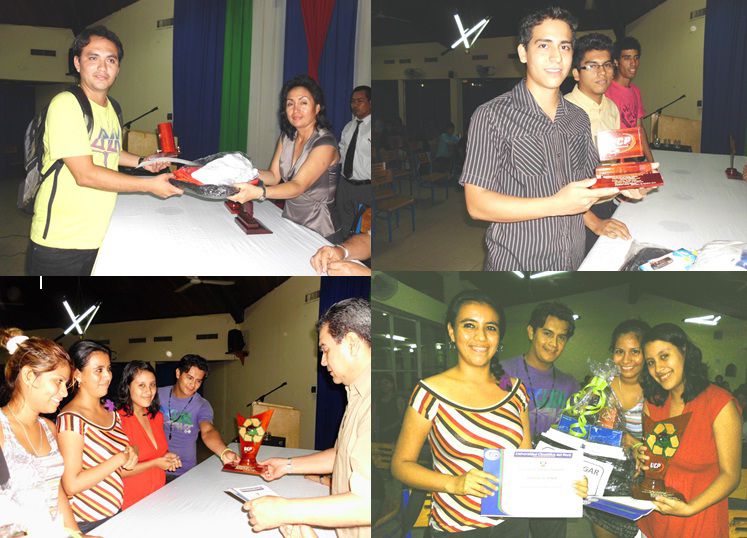 En el concurso de reciclaje organizado por la carrera profesional de Ecología, los ganadores de este año fue el grupo denominado «Arte Plástico», quienes de manera muy ingeniosa realizaron un resistente y cómodo sofá de tres cuerpos, utilizando botellas de gaseosas, cinta de embalaje, cartón, telas y esponja. Este grupo de creativos ecologistas estuvo conformado por: