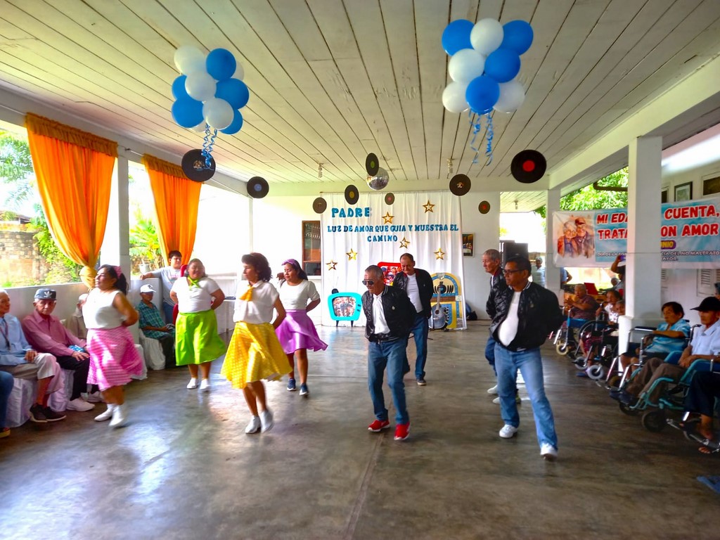 El agasajo prosiguió con la entrega de regalos a los albergados, luego hubo presentaciones artísticas con interpretación de canciones, declamación de poemas y presentación de una coreografía alusiva a la recordada película Grease, la celebración culminó con un compartir de bocaditos y un baile de camaradería. Cabe indicar que esta celebración fue posible gracias a la colaboración de diferentes personas naturales y jurídicas de la localidad que se aunaron a este acontecimiento por el Día del Padre.