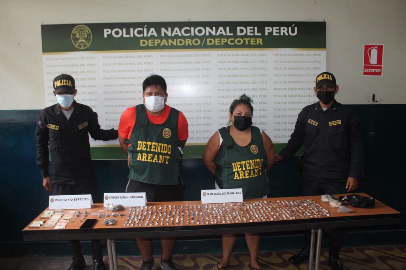 Asimismo, la policía encontró en posesión de ellos una bolsa color negro conteniendo en su interior 500 envoltorios de los denominados “ketes” de papel periódico impreso, haciendo un peso aproximado de 500 gramos aproximadamente de una sustancia parduzca pulverulenta con características propias y/o similares a Pasta Básica de Cocaína (PBC) y en uno de los dormitorios del inmueble encontraron una bolsa negra que contenía en su interior Cannabis Sativa – Marihuana, con un peso aproximado de 100 gramos, por lo que de inmediato ambas personas y las sustancias encontradas fueron trasladados hasta las instalaciones del Área Antidroga, para continuar con las diligencias de ley con participación del representante del Ministerio Público – Fiscalía Especializada en tráfico ilícito de drogas – FETID. (C. Ampuero)