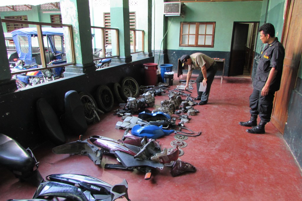 Tras un operativo inopinado, agentes de SEINCRI de la delegación policial Iquitos, lograron recuperar autopartes de motocicletas que se encontraban en un taller ubicado en la calle Freyre Nº 670 de propiedad de Jorge Luis Pizarro Fachín (28). En el lugar la policía encontró, plastiquería de reconocidas marcas (Yamaha y Honda), amortiguadores, sistemas de arrastre, asientos, llantas, herramientas (llaves mecánicas) y motores, uno de ellos fue reportado como robado hace dos meses, es decir, consultaron a la base de datos del DEIPROVE de la DIRTEPOL-Loreto, sobre el Carter del motor de serie Nº SDH150FMG-2C5855112, siendo el resultado POSITIVO para HURTO AGRAVADO, por lo que de inmediato iniciaron las diligencias investigatorias con participación del representante del Ministerio Público.