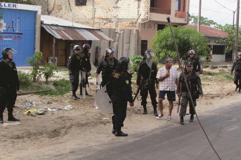Tras el enfrentamiento los protestantes declinaron la medida y optaron por ponerse a un costado de la carretera mientras que la policía empezó a sacar los palos, troncos de madera y llantas que ardían en el centro del pavimento para dejar que el tránsito fluya con normalidad. Sin lugar a dudas una batalla campal que se registró en la zona sur por falta de agua potable y en contra de la empresa Sedaloreto. (C. Ampuero)