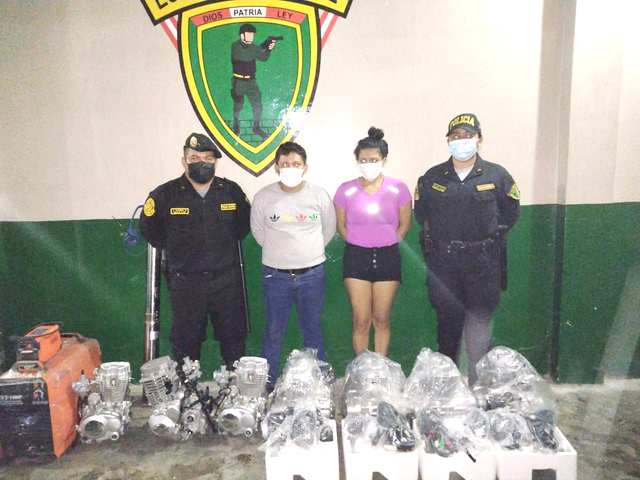 En tiempo record, agentes PNP del Escuadrón Verde – Grupo Terna Iquitos, al mando de su jefe operativo, teniente PNP Romer Vásquez Alfaro, luego de ejecutar acciones de inteligencia lograron intervenir en una vivienda ubicada en la 5ta cuadra de la calle Brasil, a las personas identificadas como Marcel André Pérez Manihuari (21) y Nair Araceli López Cárdenas (19), inmersos en la presunta comisión del delito contra el patrimonio – receptación, integrantes de la banda criminal “Los topos de la zona centro”, recuperándose el 90 por ciento de los bienes robados, en agravio de la tienda comercial “Shimba Import & Export.