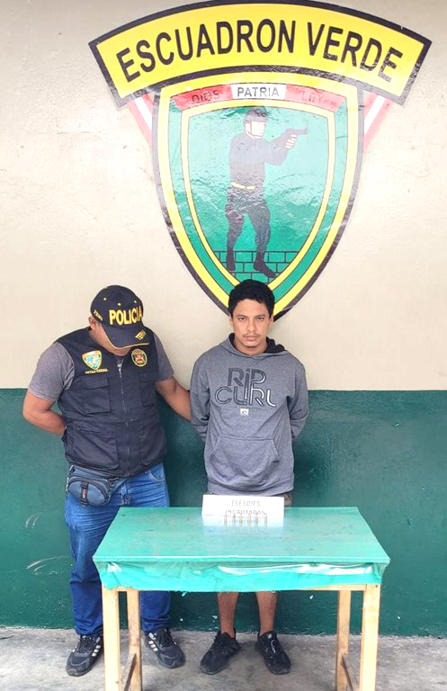 Cerca de las 8 de la noche de ayer 15 de junio, agentes PNP del Escuadrón Verde – Grupo Terna Iquitos- IV Macro Región Policial Loreto, luego de realizar acciones de inteligencia intervinieron a Giovanni Jesús Gutiérrez Arellano (30), por estar inmerso en la presunta comisión del delito contra la seguridad pública – peligro común – fabricación, Suministro o Tenencia ilegal de armas, municiones, materiales peligrosos, en agravio del Estado Peruano.