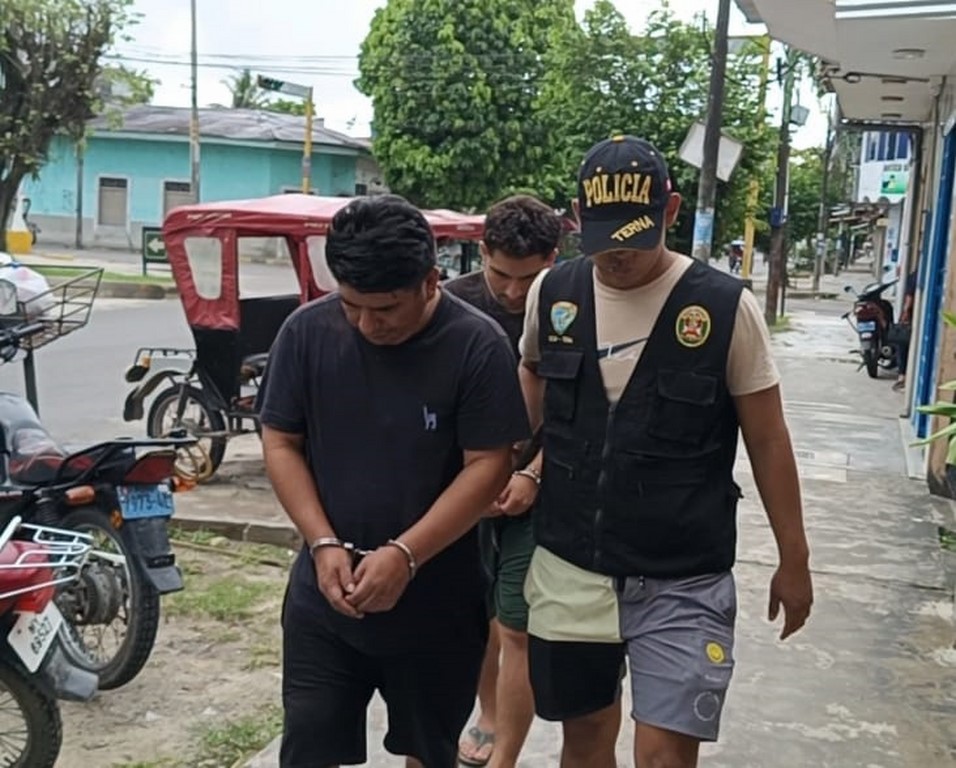 El último fin de semana, agentes PNP del Escuadrón Verde – Grupo Terna Iquitos, contando con el apoyo logístico y personal del Serenazgo de San Juan Bautista, en las calles Putumayo con Alzamora, frontis del coliseo cerrado, en circunstancias que realizaban acciones propias de sus funciones, lograron intervenir a dos sujetos de sexo masculino, identificados como Richard Alan Nateros Pacheco (49) y Richard Piero Nateros Arévalo (24), quienes en forma sospechosa se desplazaban como pasajeros a bordo de un motocarro de color azul, marca honda, con placa de rodaje 6443-AL, conducido por Marco Antonio Sandi Macedo (53).
