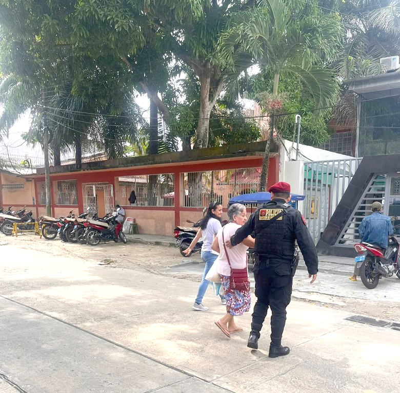 Está noble y loable acción lo pudimos captar al promediar las 09:06 de la mañana de ayer, al observar a los Suboficiales de 2da PNP Saulo Pérez Gamarra y Hampier Morales Sinti, de la unidad de Emergencia 105 “Águilas Negras” – IV Macro Región Policial Loreto, en el cruce de la vía de la calle Sargento Lores cuadra seis, dejando por unos minutos sus labores de patrulaje preventivo por las calles de la ciudad, para apoyar a una persona adulto mayor e invidente a cruzar la pista.