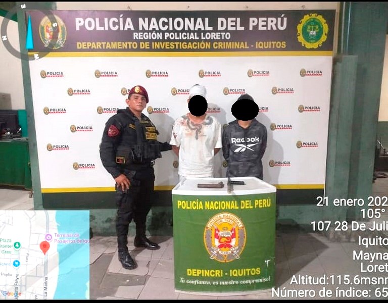 Efectivos de la Unidad Águilas Negras de la Región Policial Loreto intervinieron a dos menores de edad presuntamente involucrados en disturbios, disparos con un arma de fuego artesanal y alteración del orden público, en un hecho ocurrido la madrugada de ayer, alrededor de la 01:30 a. m., en inmediaciones de la intersección de las calles San Antonio y Amazonas.
