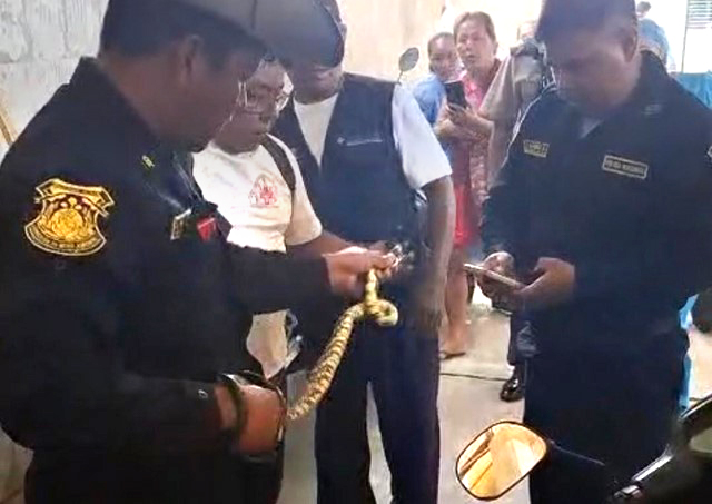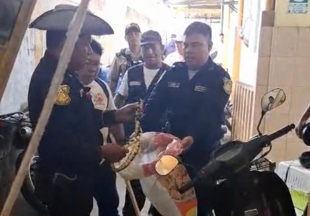 Ante el riesgo de un posible ataque, personal del centro de salud reportó el incidente a las autoridades. Minutos después, efectivos policiales del departamento de medio ambiente llegaron al lugar para atender la emergencia y proceder con la captura del reptil.