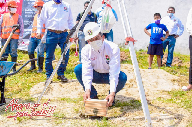 Cumpliendo con lo ofrecido a los vecinos del AAHH Virgen de Lourdes, el alcalde de la Municipalidad Distrital de San Juan Bautista, Martín Arévalo, acompañado por funcionarios del área de obras e infraestructura, así como los regidores Manuel Polanco y Melissa Rodríguez, llegó hasta este lugar para colocar el primer ladrillo de la obra “Mejoramiento e Instalación del Sistema de Alcantarillado de Aguas Pluviales“.