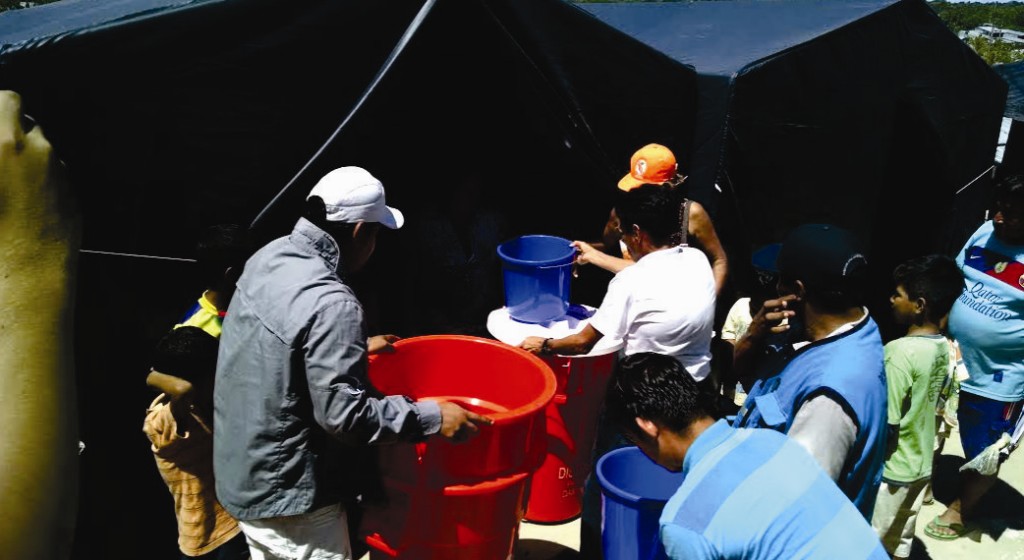 En tal sentido, ayer domingo se hizo entrega de un total de 80 baldes para agua (con capacidad para 5 y 18 litros de agua) distribuidos donde se encuentran las carpas (40 en calle Sánchez Cerro con Participación; 15 en calle Santa Lucía y 25 en calle Balmes Flores).