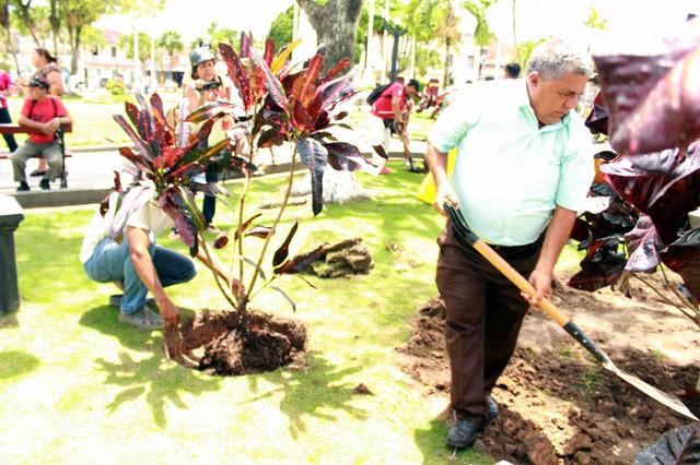 Las áreas verdes de la principal plaza de la ciudad de Iquitos contará con plantas ornamentales y frutales que fueron colocadas en las últimas semanas, siendo la primera etapa la siembra del césped chino, ahora se suma los árboles LED de navidad y estarán culminadas hasta la quincena del mes de noviembre del presente año, por ello pedimos a los vecinos no pisar el césped chino que fue sembrado hace pocos meses ni arrancar las flores ni las plantasM; mantengamos limpia, ordenada y ecológica nuestra plaza principal.