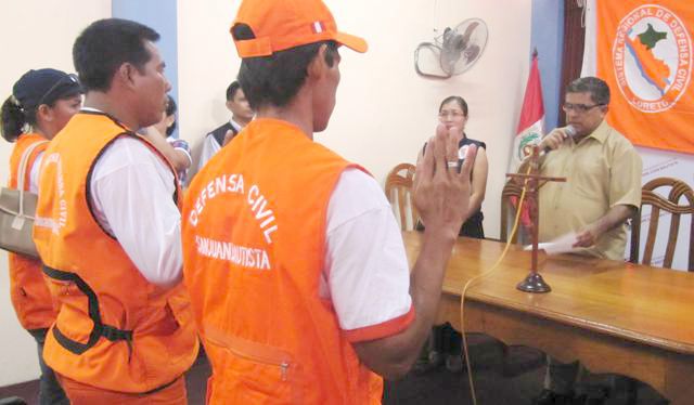 El día viernes en las instalaciones del auditorio de la sede municipal, el Alcalde Francisco Sanjurjo Dávila, presidió la ceremonia de juramentación del nuevo grupo de Brigadistas Voluntarios del Comité Municipal de Defensa Civil. Este acto se realizó en cumplimiento de la Ley N°29664, nueva ley del Sistema Nacional de Gestión del Riesgo de Desastres, que se traduce en la participación de la Sociedad Civil como un deber y un derecho a través del Voluntariado.