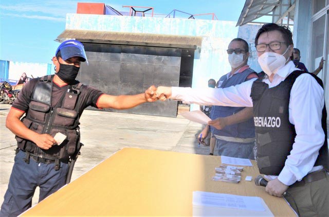 En ceremonia realizada en los ambientes de la Base del Serenazgo distrital, el alcalde de Belén, Gerson Lecca, realizó la entrega de incentivo económico al personal de Limpieza Pública y a nuestro Serenazgo por haber estado en la primera línea en la lucha contra el COVID-19.