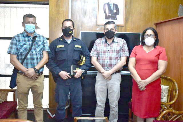 Al medio día de ayer, el comandante PNP Richard Gonzáles Begazo nuevo comisario de la Comisaría 09 de Octubre hizo una visita protocolar al alcalde Martín Arévalo Pinedo alcalde de la Municipalidad Distrital de San Juan Bautista quien estuvo junto a la gerente municipal Dora Vigo y funcionarios.
