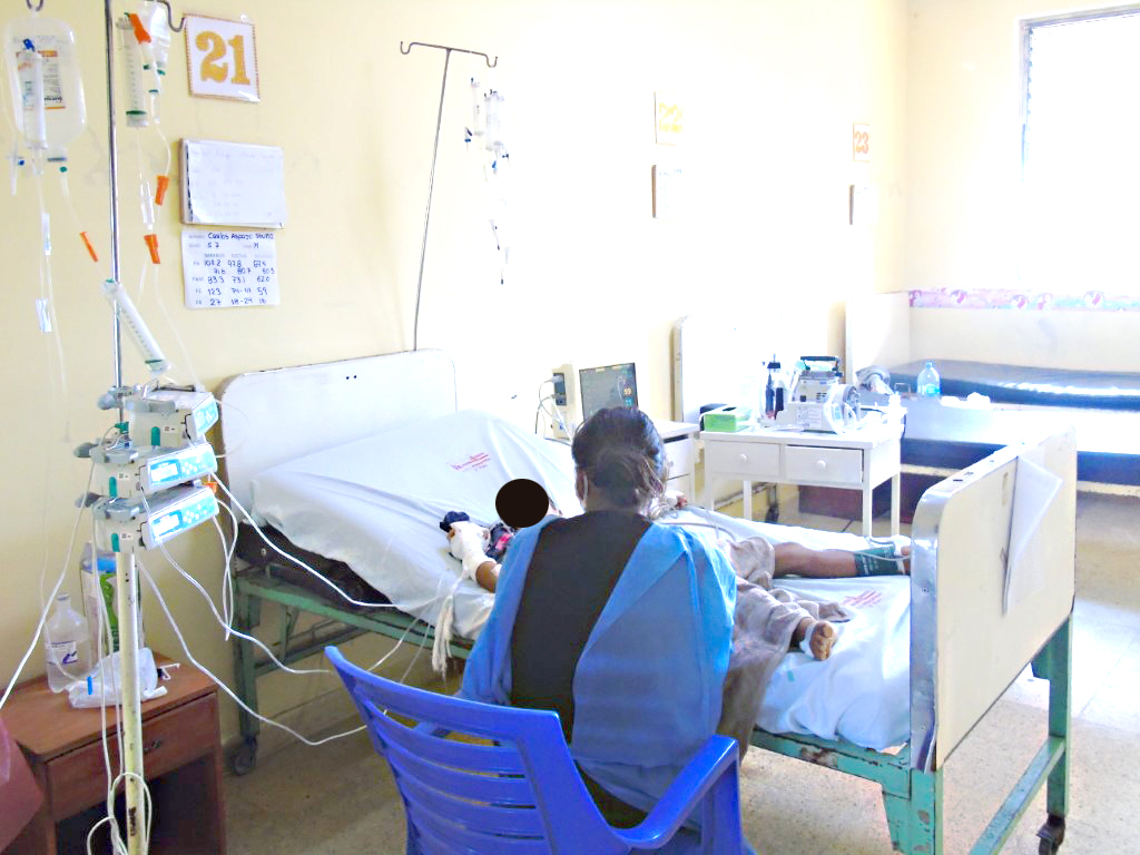 Siete en el pabellón de pediatría y tres en UCI pediátrica. De los tres… dos con ventilación mecánica y uno al que le retiraron el tubo, ya no está intubado. (Un pequeño de año y medio trasladado desde Yurimaguas).