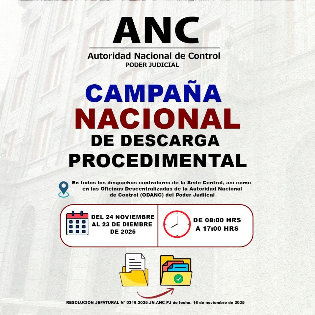 La jornada se extenderá hasta el 23 de diciembre y abarcará a los despachos contralores de la Sede Central y a las Oficinas Descentralizadas de la Autoridad Nacional de Control (ODANC) a nivel nacional, en el horario de 08:00 a.m. a 05:00 p.m.