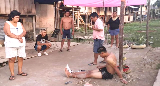 Con ayuda de sus familiares y sus vecinos, la agraviada amarró a un horcón de madera al presunto ladrón, a la espera de la policía