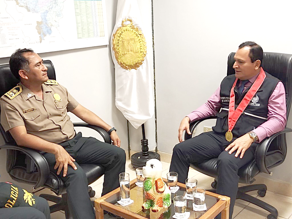 El Mg. Raúl Rivas Delgado, en su calidad de presidente de la Junta de Fiscales Superiores de Loreto, recibió la visita del Gral. PNP David Pablo Villanueva Yana, jefe de la IV Macro Región Policial Loreto, siendo esta la primera oportunidad de ambas autoridades de intercambiar ideas respecto al trabajo de cada institución.
