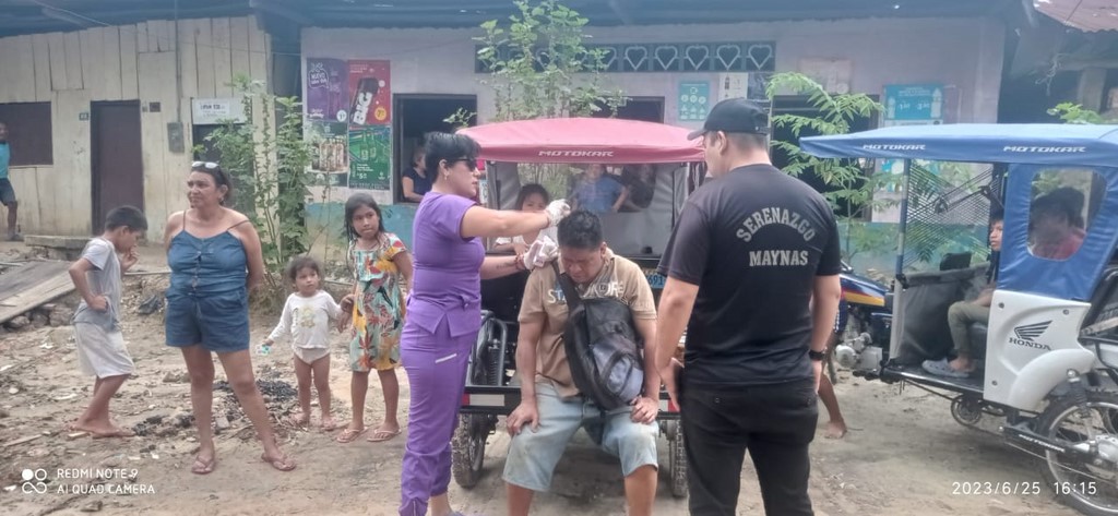 A mérito de una llamada telefónica al Centro de Operaciones de Emergencia de Maynas, personal del serenazgo se trasladó rápidamente hasta el pasaje González Vigil, para ayudar y brindar los primeros auxilios a una persona de aproximadamente 50 años.