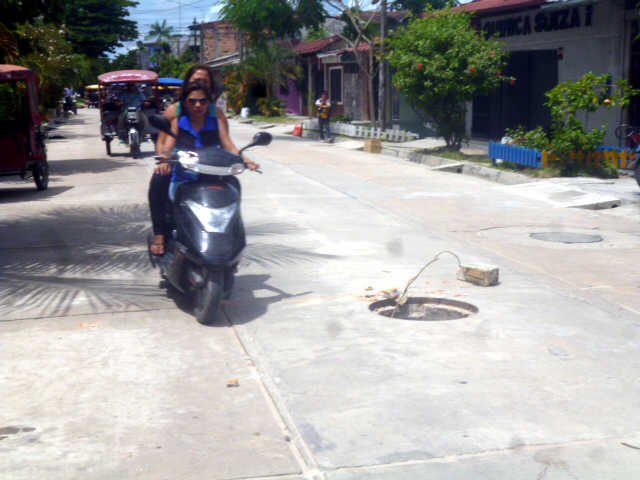 No podemos entender cuál es la forma de cómo se roban la tapa de los buzones, pues no hemos escuchado nada, solo nos hemos dado cuenta al día siguiente cuando los conductores de motocarro tenían que esquivar el peligros hueco que ha quedado en media pista.