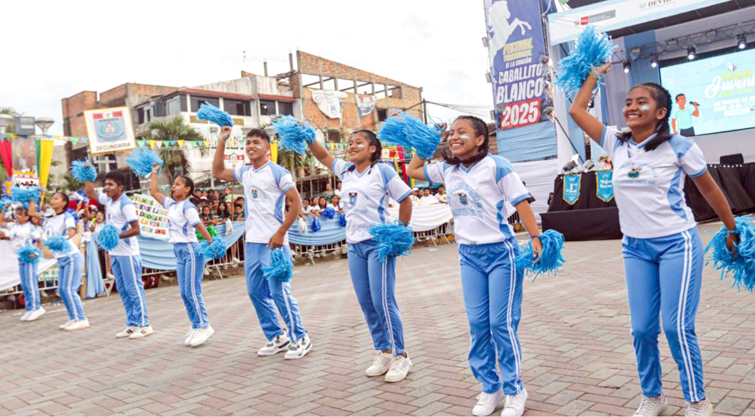 Con entusiasmo y amplia participación estudiantil, Caballo Cocha fue escenario del Festival Juvenil Caballito Blanco “Trofeo Habla Franco”, organizado por la Comisión Nacional para el Desarrollo y Vida sin Drogas (Devida) en coordinación con la Municipalidad Provincial de Mariscal Ramón Castilla.