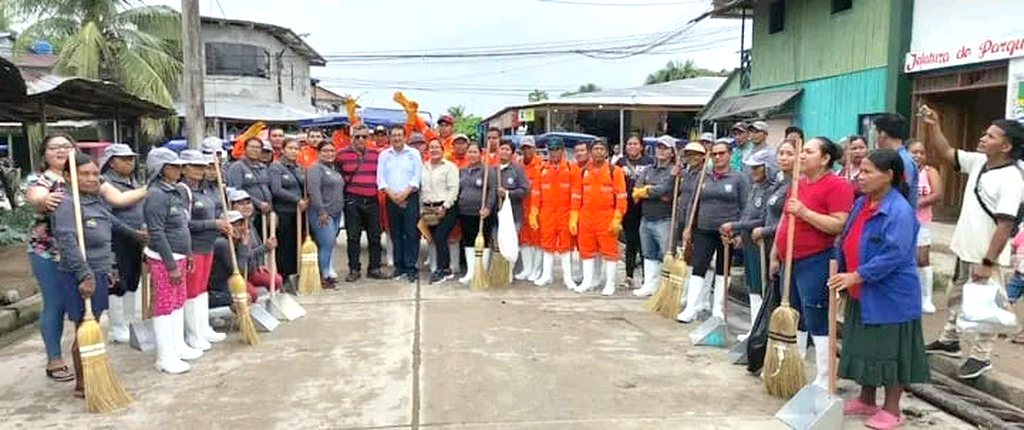 Gracias a la política de gestión articulada y buen gobierno, que lleva a cabo el Ing. Julio César Kahn Noriega, alcalde de la provincia Mariscal Ramón Castilla, y preocupado por la integridad y salud de los ciudadanos, esta mañana implementó a toda el personal de limpieza pública, áreas verdes y jardines de la Gerencia de Servicios Públicos y Medio Ambiente, con la entrega de 50 pares de botas de jebe, guantes, overoles, polos manga larga, zapatos botines, gorros, capotas para la lluvia y otros implementos.