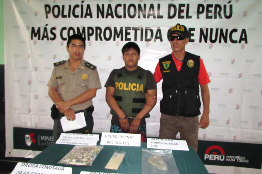 Agentes encubiertos del grupo “Terna” de la PNP lograron intervenir en flagrante delito a Jackson Raúl Torres Guzmán (19) con varios envoltorios de pasta básica de cocaína. La policía ya le tenía en la mira y solo bastaba ubicarlo y encontrarlo en flagrancia. Fue así que los agentes tras seguirle los pasos dieron con él en la prolongación Libertad con Calle 6 en la zona baja del distrito de Belén justo cuando microcomercializaba la ilegal mercancía.