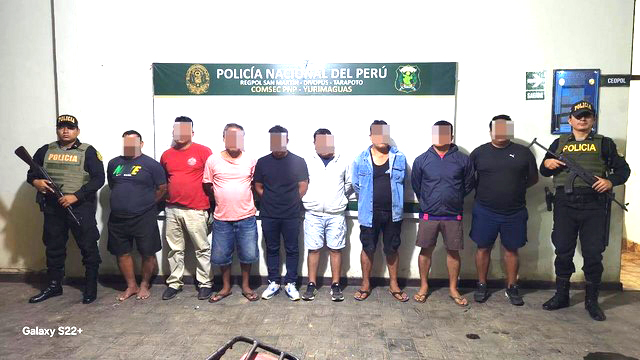 Los ocho detenidos permanecen bajo custodia en la comisaría de Yurimaguas, mientras que la madera incautada quedó en poder de la Policía.