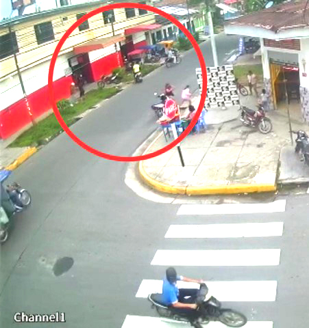 Las redes sociales difundieron los videos de las cámaras de seguridad. En uno de ellos se puede observar cuando dos sujetos bajan de una motocicleta de alto cilindraje de color rojo.