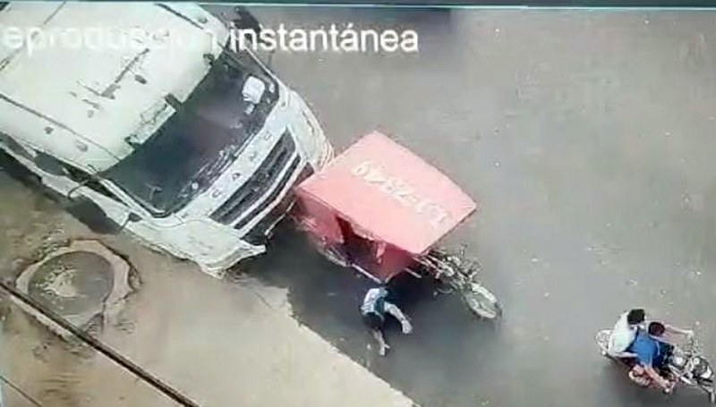 El hecho quedó registrado por las cámaras de videovigilancia de la municipalidad, donde se observa cómo el vehículo mayor impacta al trimóvil, haciendo que el conductor caiga al pavimento y sea arrollado.