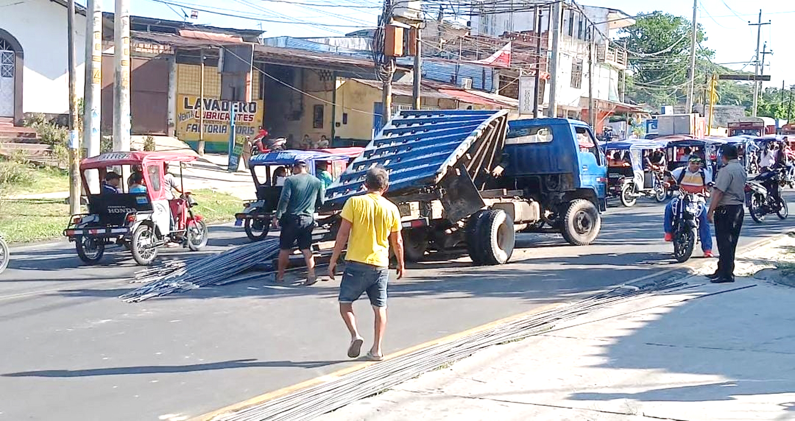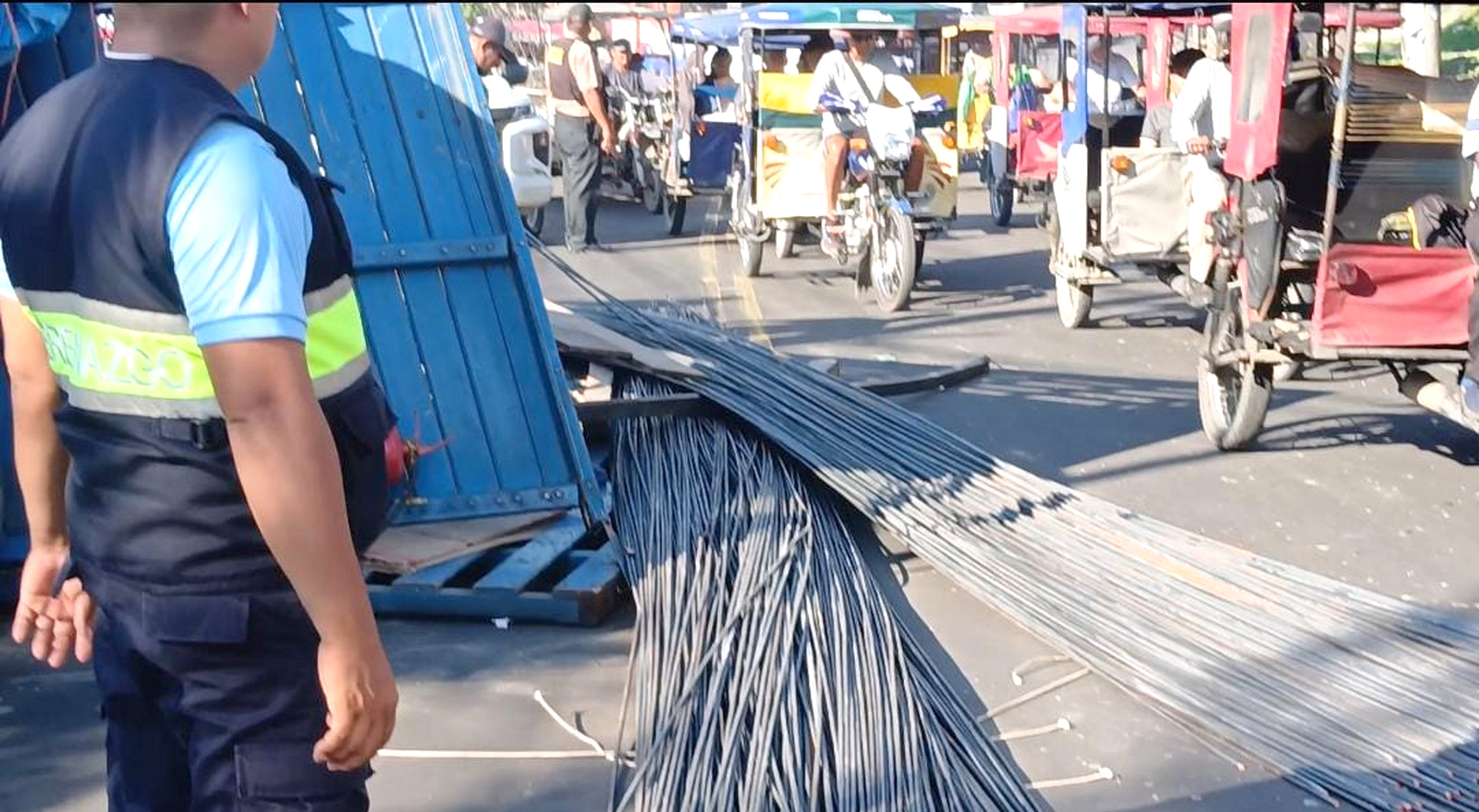 Un grave incidente de tránsito se registró ayer en la avenida José Abelardo Quiñones con pasajes San Lorenzo, cuando un camión que transportaba gran cantidad de varillas de fierro sufrió un desperfecto mecánico tras una mala maniobra del conductor. Según testigos, la carrocería de madera del vehículo se encontraba en pésimo estado, lo que habría facilitado que toda la carga se desplome abruptamente en plena vía pública.