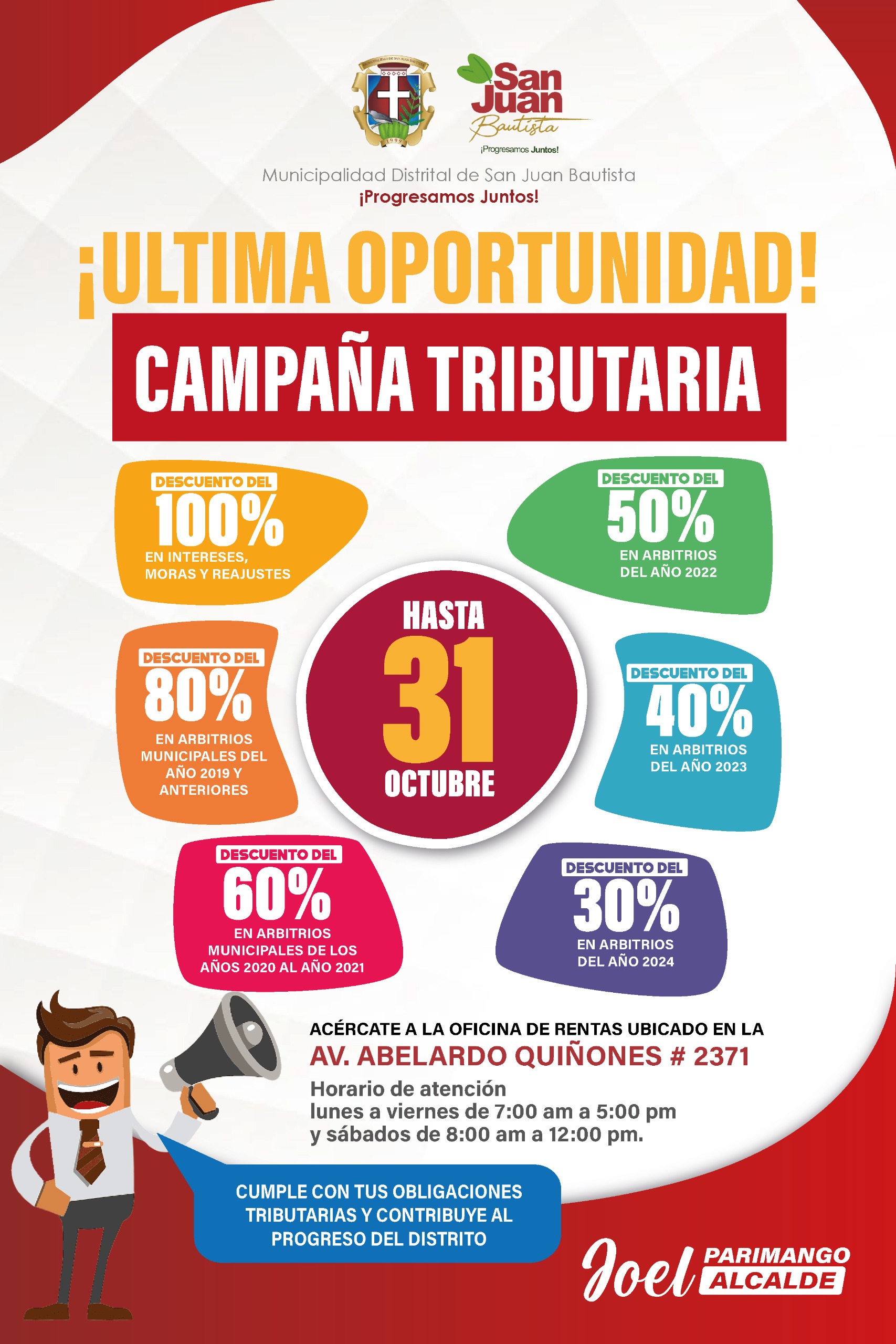 Cumple con tus obligaciones tributarias y contribuye al progreso del distrito.