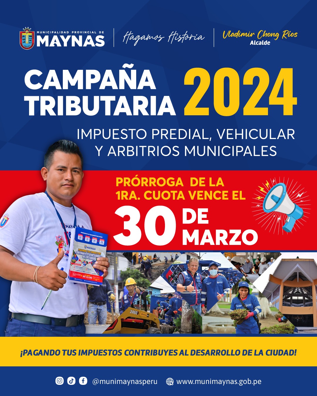Estimado vecino, vecina, aprovecha la Gran prórroga de la Campaña Tributaria 2024 y ponte al día en el pago de tus tributos.