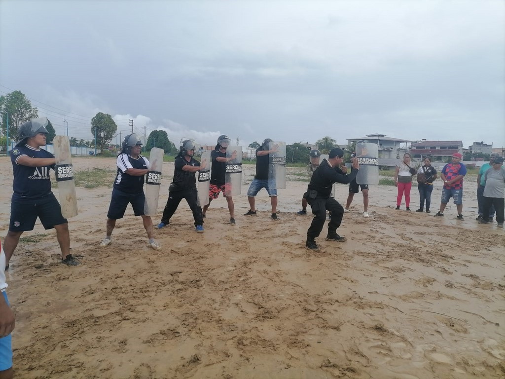 En esta oportunidad, la citada actividad de capacitación estuvo a cargo del comandante PNP Percy Pérez Elizalde, Jefe de la Unidad de Emergencias 105 de La IV Macro Región Policial Loreto, quien al ser requerido por su apoyo en temas de adiestramiento sobre técnicas de control de multitudes y demás conocimientos básicos antes citados, no dudó en aceptar y en una hora y lugar pre establecido se reunió con los integrantes del Cuerpo de Serenazgo de la citada municipalidad distrital y dio inicio al ciclo de capacitaciones, enmarcado en la ley de seguridad ciudadana y demás dispositivos legales vigentes.