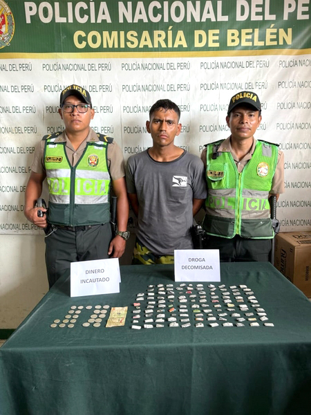 En una rápida intervención policial, agentes de la Comisaría de Belén capturaron este miércoles a Jaime Junior Sandi Santillán, de 38 años, alias «Calle 13», por estar presuntamente implicado en el delito contra la salud pública, específicamente por tráfico ilícito de drogas en su modalidad de microcomercialización.