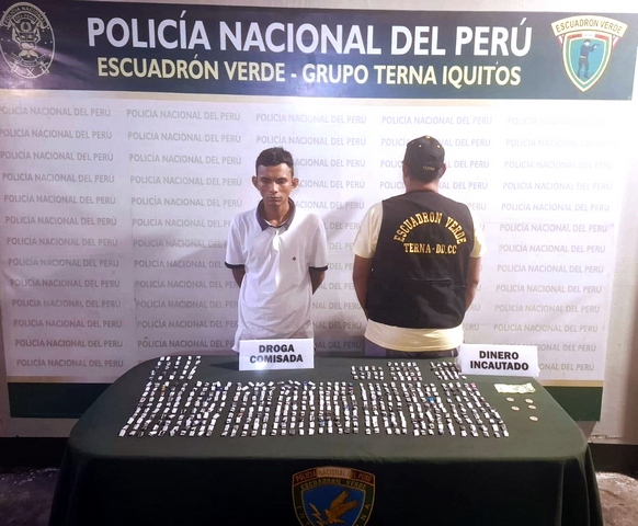 En una acción coordinada de lucha contra el tráfico ilícito de drogas, agentes del Escuadrón Verde – Grupo Terna de la Policía Nacional del Perú (PNP) lograron la intervención de un sujeto presuntamente dedicado a la microcomercialización de estupefacientes en el distrito de Punchana, provincia de Maynas, región Loreto.
