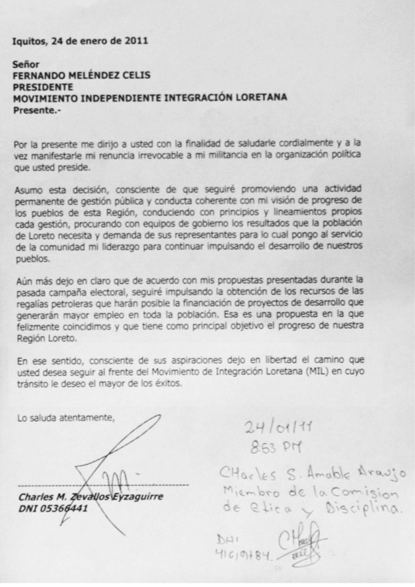 Charles Zevallos renuncio al MIL