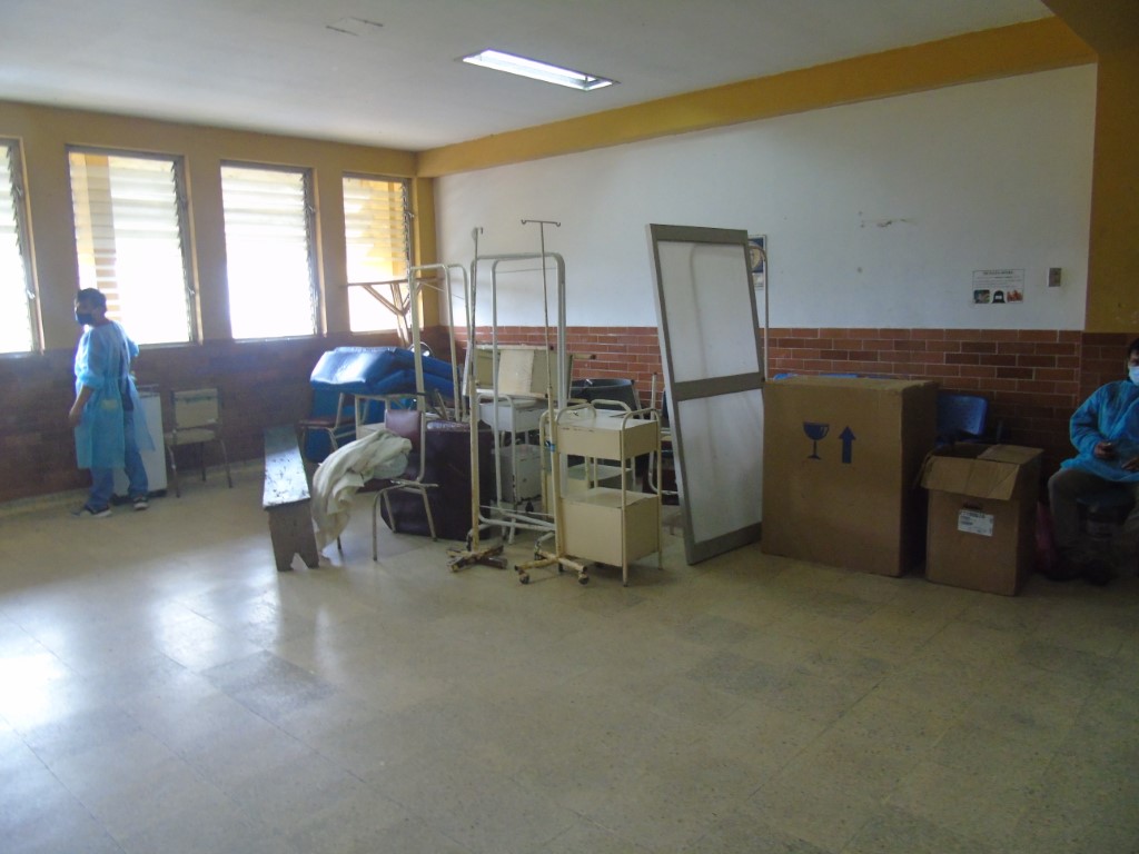 Ayer se recorrió dicho pabellón, viéndose aún todos los equipos instalados en la UCI cerrada, recién desinfectados. Las camas, herramientas de trabajo, ambientes administrativos, todos bajo una desinfección total a fin de pulverizar a la dañina bacteria que ha podido matar, no solo a dos, sino a todos los ahí hospitalizados por covid.