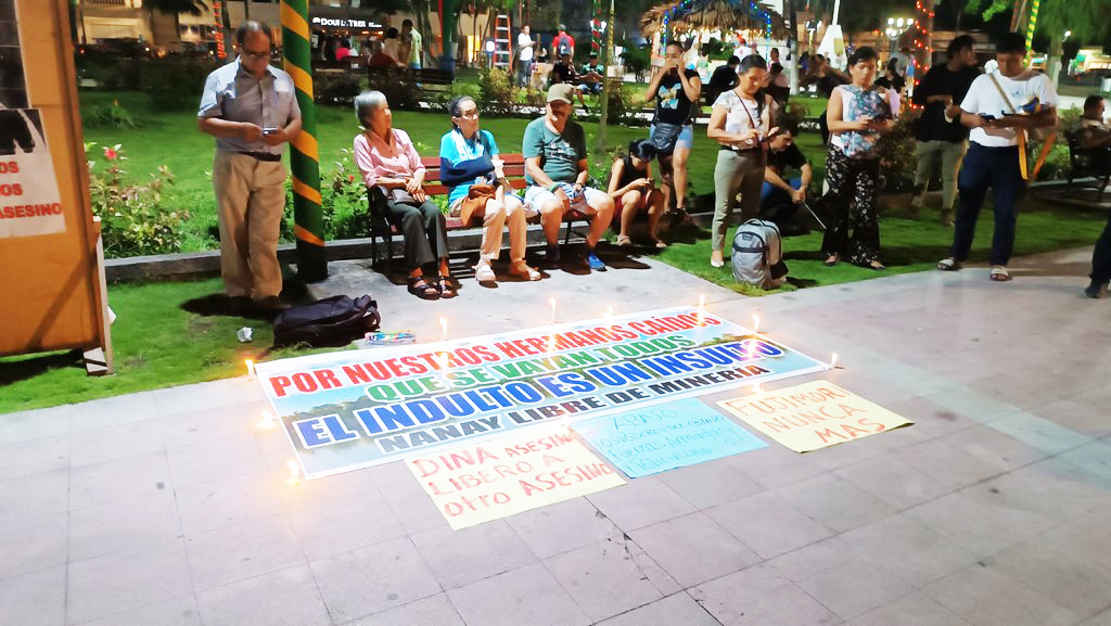 Un grupo de ciudadanos se concentró la noche de ayer, jueves 7 de diciembre, en la plaza de armas de la ciudad loretana de Iquitos, para realizar una acción de protesta en contra de la reciente liberación del ex presidente de la República, Alberto Fujimori Fujimori.