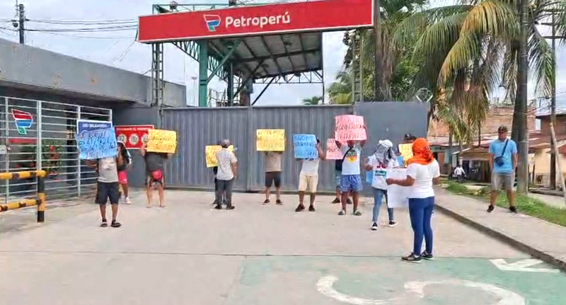 Un grupo de ciudadanos realizó una protesta pacífica en la vía de acceso a la planta de venta de Petroperú, ubicada en la calle Piura, en el distrito de Punchana, en la ciudad de Iquitos, expresando su rechazo a una presunta intención de privatizar la empresa estatal.