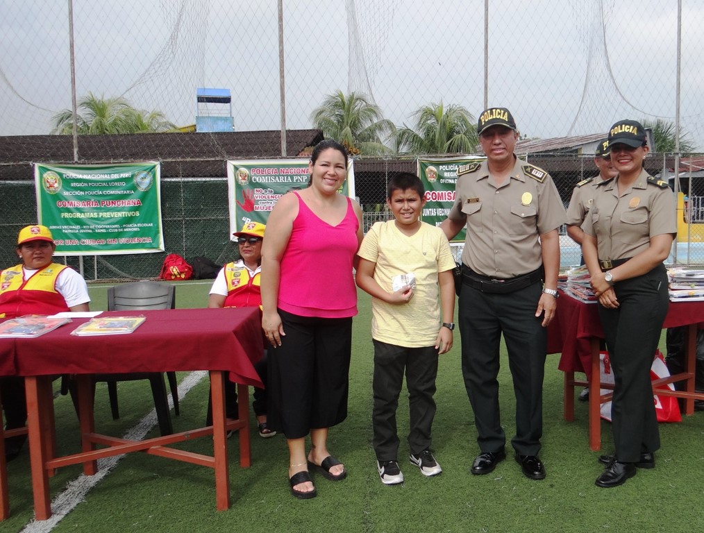 Tras la entonación del himno nacional, coreado por los presentes, posteriormente se hizo demostración de yudo y canto, luego el Cmdte PNP Luis Mesías Pedraza – Comisario de Punchana, mediante un discurso agradeció a los padres de familia, profesores voluntarios y unidades PNP, que apoyaron durante las vacaciones útiles, luego procedió al acto de clausura, continuando con el programa el Sr. Frank Saboya Tenaza, en representación de los padres de familia, agradeció a la comisaría Punchana por el buen trabajo que viene realizando entre ellos, el programa club de menores “ amigos del policía” con las vacaciones útiles, mediante el cual se fortalece la formación de los menores y valores para no caer en las drogas, pandillaje, barras bravas y otros, luego se realizó la entrega de Diplomas de honor a los instructores y profesores voluntarios, que participaron en las clases, para concluir se distribuyó a todos los menores participantes un kit escolar consistentes, en cuadernos, lápices, lapiceros, borradores, reglas etc,