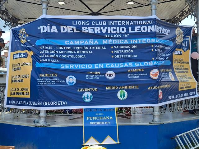 Ayer, miércoles 8 de octubre, los siete Clubes de Leones de la ciudad de Iquitos se unieron para celebrar el Día Mundial del Servicio Leonístico, fecha en la que esta organización internacional promueve acciones solidarias en beneficio de las comunidades más necesitadas. La jornada se desarrolló en la glorieta de Belén, donde cientos de vecinos acudieron para recibir distintos tipos de atención social y médica.