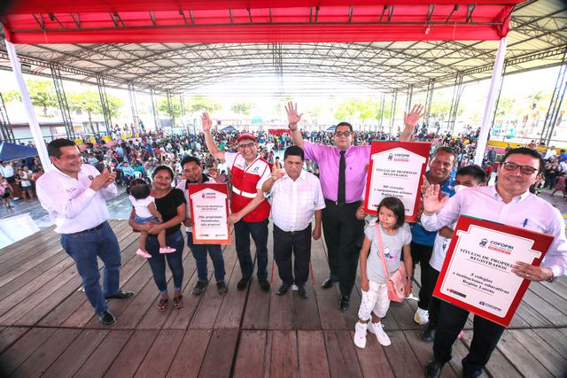En un ambiente de festejo y celebración, esta mañana el Organismo de Formalización de la Propiedad Informal (COFOPRI), entregó 905 títulos de propiedad para viviendas y equipamiento urbano en la Región Loreto que benefician a las provincias de Maynas, Loreto, Mariscal Ramos Castilla, Requena y Putumayo, ubicadas en la región Loreto.