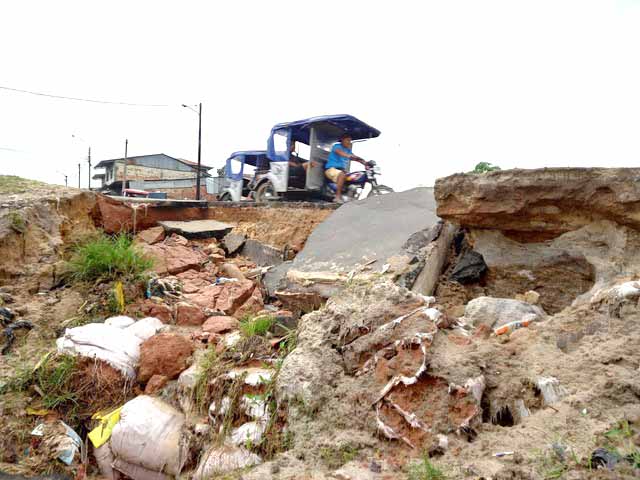 Un tramo de la avenida la participación que se encuentra ubicado por inmediaciones de la carretera Iquitos-Nauta, se encuentra en pésimas condiciones y en cualquier momento podría colapsar completamente.