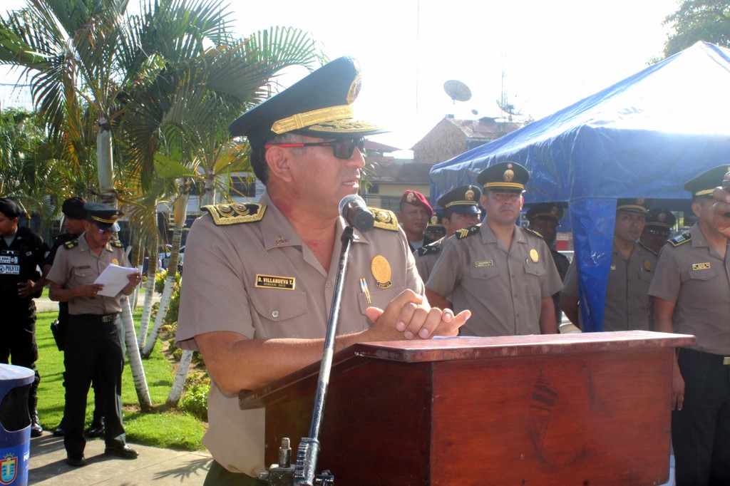 En su oportunidad, el Comandante Juan Carlos Ortega Samamé, Comisario de Iquitos, estuvo a cargo del discurso de orden en cuyo contexto abordó un interesante y acogedor tema como la celebración del “Día de la Madre”; en el que destacó las acciones importantes que desarrolla la mujer desde el interior de la institución policial en bien de la Seguridad Ciudadana. Por su parte el general PNP Villanueva Yana, en su debida oportunidad hizo entrega de reconocimientos a los efectivos policiales que destacaron en el cumplimiento de sus funciones, motivando a al personal policial a seguir en ese propósito en bien de la seguridad ciudadana; fue durante su discurso que hizo un emotivo llamado a la unión entre Comunidad y la propia Policía Nacional y trabajar con un solo objetivo, garantizar la seguridad ciudadana; expresó a su vez, el reconocimiento público e institucional a la labor que vienen desarrollando los efectivos policiales de las diversas unidades y sub unidades con participación de las Juntas Vecinales de Seguridad Ciudadana de toda la jurisdicción de la Región Loreto; saludo también a las madres en la fecha especial que se avecina.