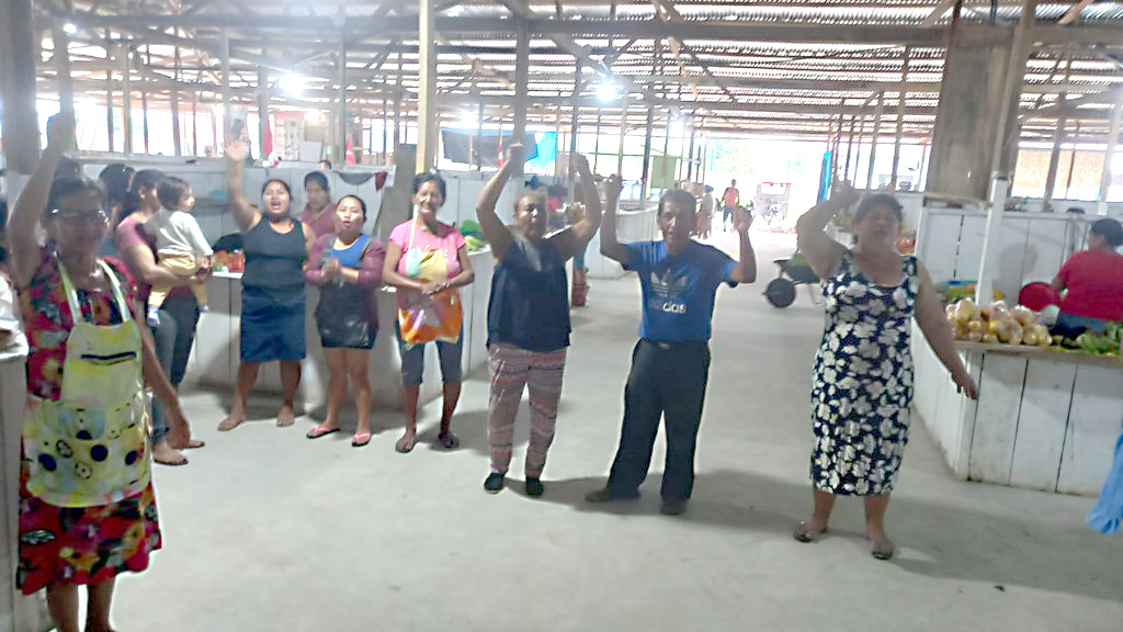 Los comerciantes del mercado ubicado en la Villa Olímpica, en el kilómetro 1.5 de la carretera interprovincial Iquitos – Nauta, del distrito de San Juan bautista, realizaron una protesta debido a la falta de apoyo de las autoridades para promocionar su centro de abasto.