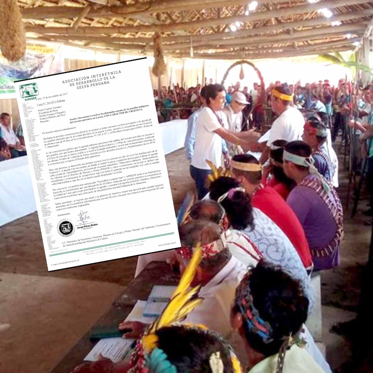 AIDESEP recalcó en el documento que desde la reunión sostenida en la Estación 5, el pasado 8 de noviembre, en la cual se definió la metodología y los plazos para atender los compromisos pactados, no se tuvo mayor avance y es por ello que indican que los pueblos originarios “no pueden esperar más”.
